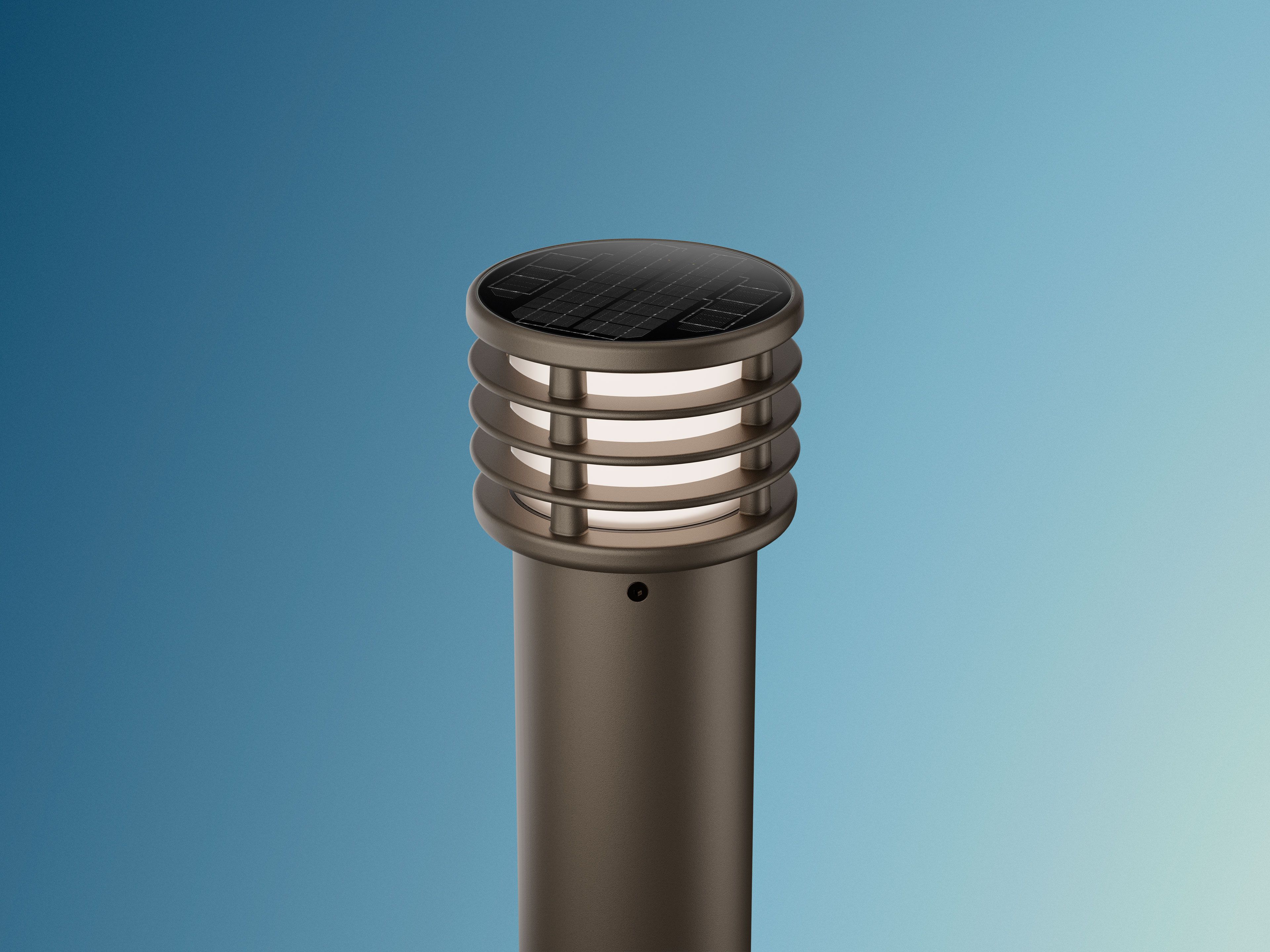 The contemporary round shape of the PLB architectural solar bollard makes it an attractive choice for pathways and other locations where an illuminated visual separation may be desired. Available in two different heights, the PLB’s robust construction, advanced solar, battery, and LED technologies, and the simplicity and speed of its installation make it an unmatched option for sleek illumination.